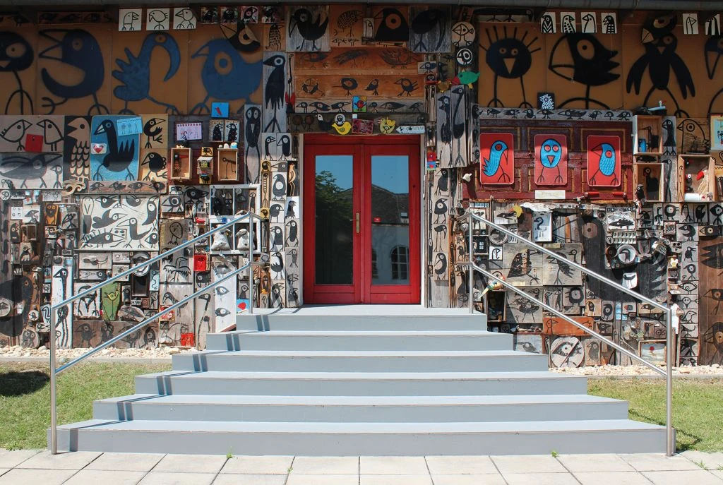Die villa gugging ist Teil des art brut center gugging und befindet sich direkt gegenüber dem museum gugging. Die detailreiche und außergewöhnliche Fassade, gestaltet vom Künstler Birdman alias Hans Langner, stimmt die Besucher*innen auf das Besondere ein, das sie auch im Inneren der Villa erwartet.