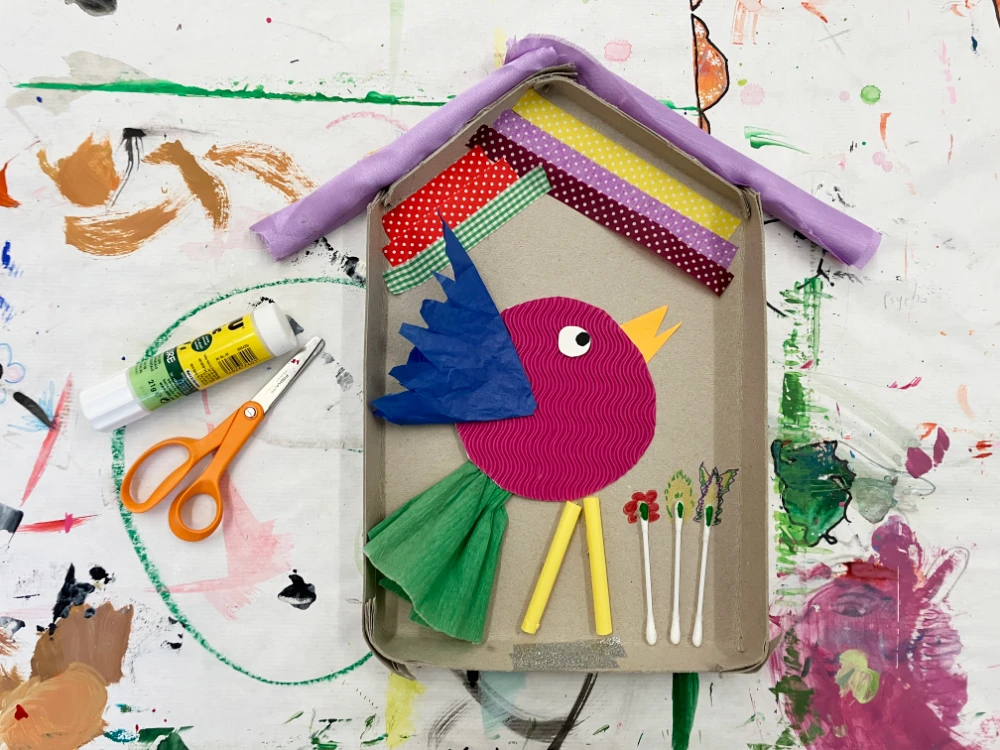 Gemeinsam gestalten wir wie „Birdman“ fantasievolle Vögel aus Papier und Buntstiften. Jedes Vogelwesen bekommt ein kleines, schützendes Häuschen, das vor Regen oder Gewitter bewahrt. Mit Karton, Farbe und Schere sammeln wir kreative Erfahrungen und erschaffen einzigartige Vogelnester.